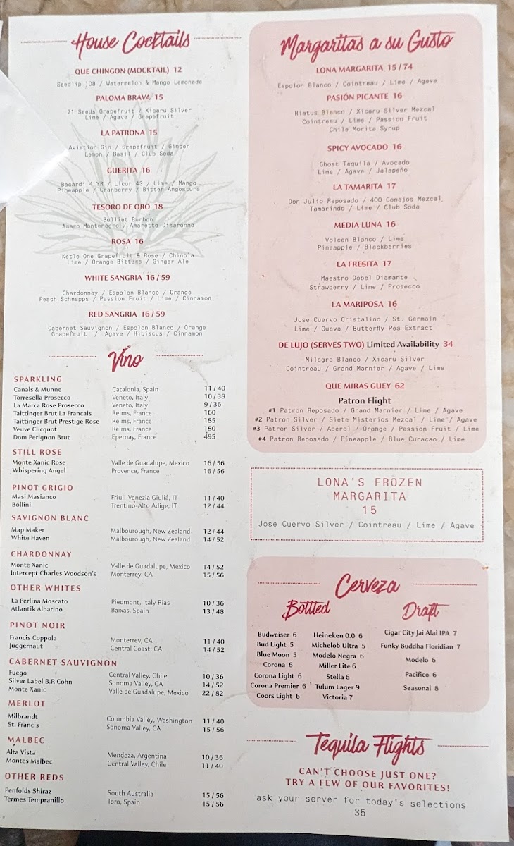 The service, while occasionally noted as a bit slow, has garnered praise for being friendly and attentive. Customers have expressed their fondness for the Tamarita and Pasión Picante margaritas, which set a delightful tone for any gathering. As you settle in, don’t forget to explore the complimentary Lona Margarita, especially if you’re sampling from the Dine Out Lauderdale menu.